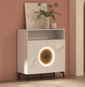 - 2 plateaux au choix : Bois (MDF standard plaqué chêne 0,6 mm) ou Céramique (MDF hydrofuge finition laqué métal avec céramique)