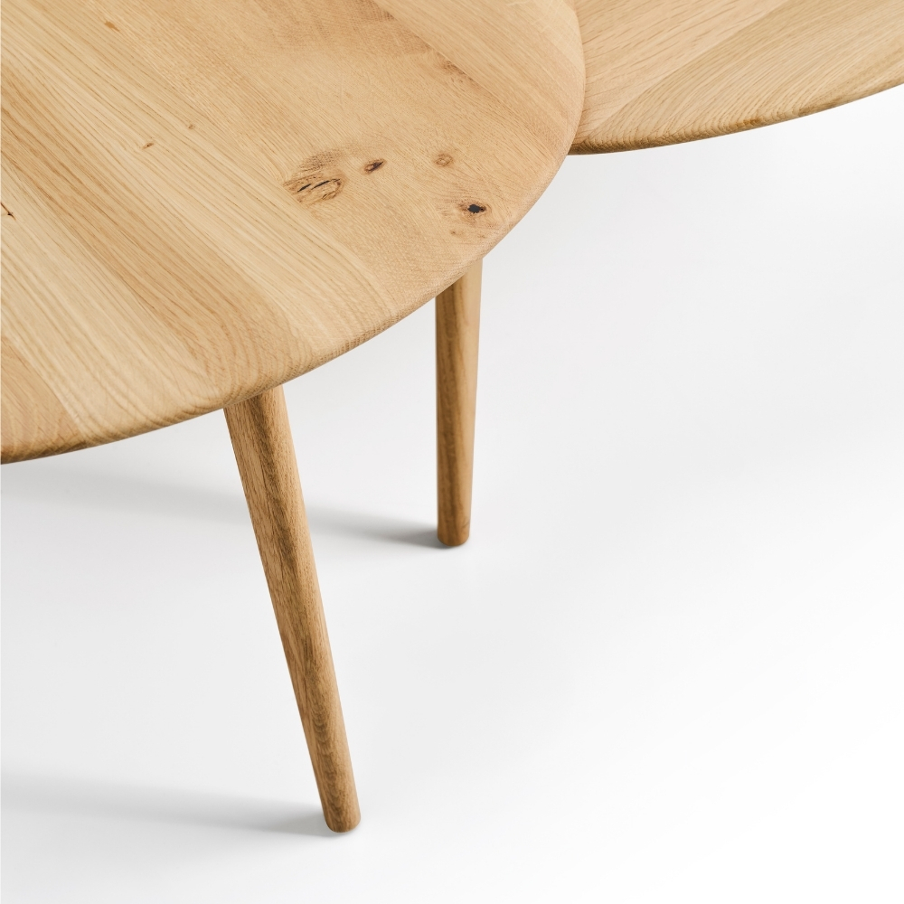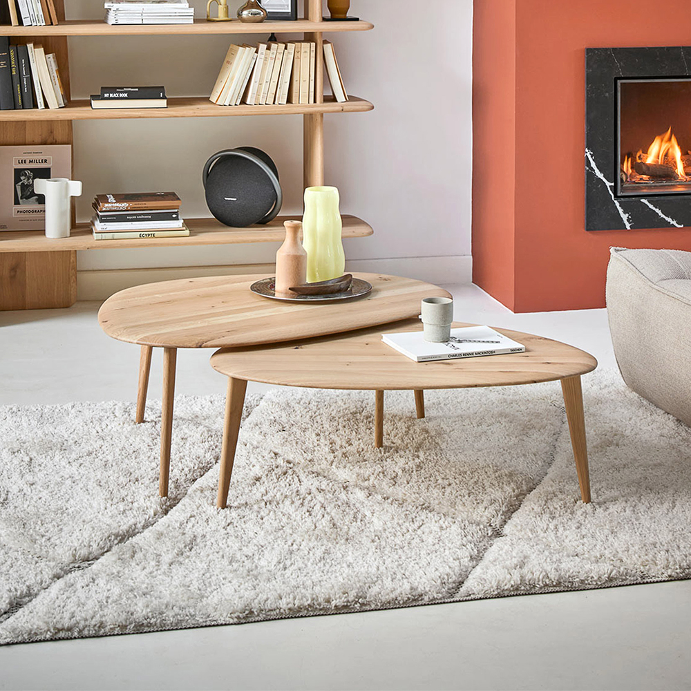 Avec leurs lignes douces inspirées des galets et leur design nordique, les tables basses BOHEME mettent en valeur la beauté du chêne massif. Leur plateau ovale associé à un piètement tripode crée une silhouette harmonieuse et intemporelle. Grâce à leur format gigogne, elles s’adaptent à toutes vos envies : tables d’appoint, chevets ou supports pour plantes, réunies au salon ou dispersées dans la maison. À la fois élégantes et fonctionnelles, les tables BOHEME apportent chaleur et authenticité à votre intérieur.