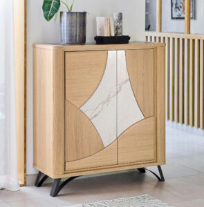 • Façade disponible en finitions blanc neige, chêne naturel, marbre, noir texturé, laqué gris nuage, laqué brique, laqué argile ou laque vert cendré